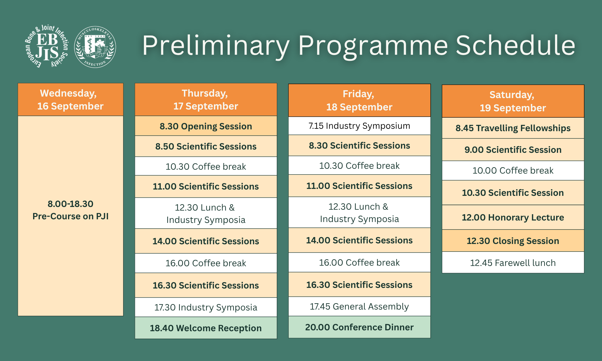 On 16 September, a Pre-Course on PJI will take place.